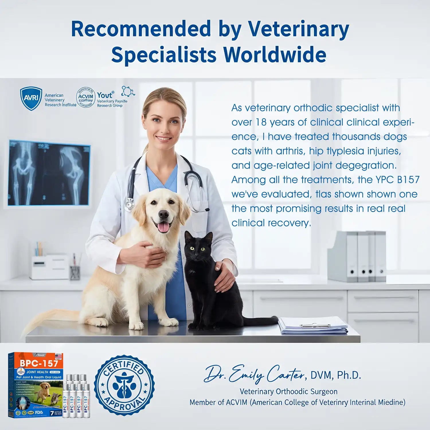 We didn’t want to use long-term steroids because of kidney risks. Then my vet suggested trying Yovot® BPC-157 — a peptide-based liquid that helps repair tissue instead of just masking pain.